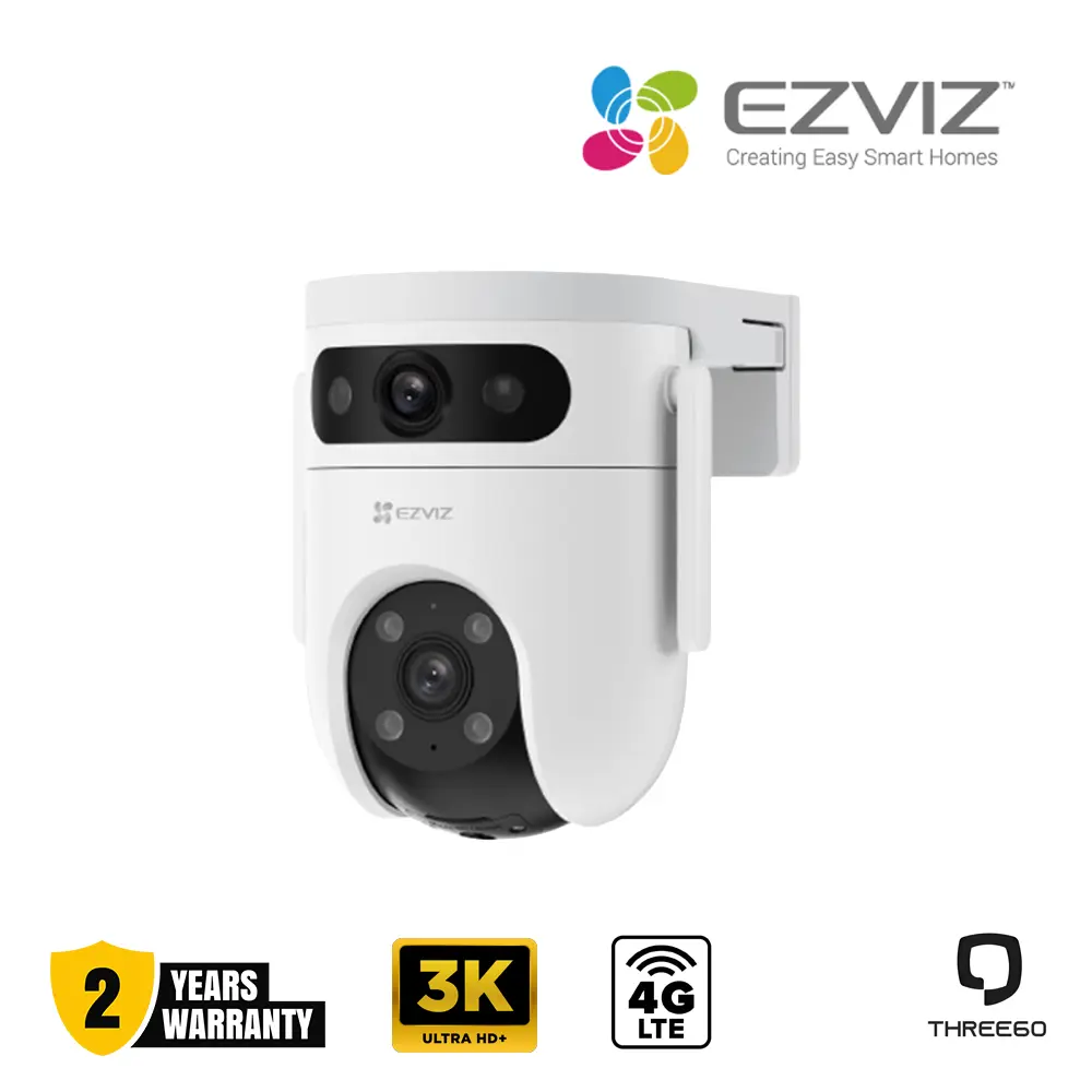 The Hikvision EZVIZ H9c 4G Dual-Lens Pan & Tilt Camera is a next-generation outdoor surveillance camera designed for comprehensive security coverage β€” even in locations without Wi-Fi. It combines 4G SIM support with optional Wi-Fi connectivity, giving you reliable remote monitoring through the EZVIZ app wherever cellular coverage exists.